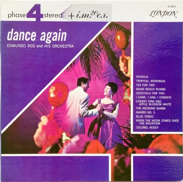 トリニダード・トバゴ出身でイギリスを拠点に活動した、エドムンド・ロス。ラテン〜イージーリスニングでは欠かせない巨匠とも言える彼が本盤では、スタンダードとも言える楽曲の数々をサンバ、メレンゲ、チャチャ、タンゴ、ルンバ、マンボといったスタイルで巧みに聴かせる全12曲。キレッキレで迫力ある音と楽曲の親しみやすさ、普遍とも感じるこの楽しさに嬉しくなります。 Latin, World USA 12inchレコード 33rpm Stereo London Records SP 44015 1962 ジャケ 4点/盤 3.5点 ジャケ若干の汚れ 盤スレキズ 見開きジャケ ♫ )))) 試聴音源 ♫ )))) https://velvet-turnon.ssl-lolipop.jp/turnonsample/danceagainedmundros1.mp3 https://velvet-turnon.ssl-lolipop.jp/turnonsample/danceagainedmundros2.mp3 https://velvet-turnon.ssl-lolipop.jp/turnonsample/danceagainedmundros3.mp3