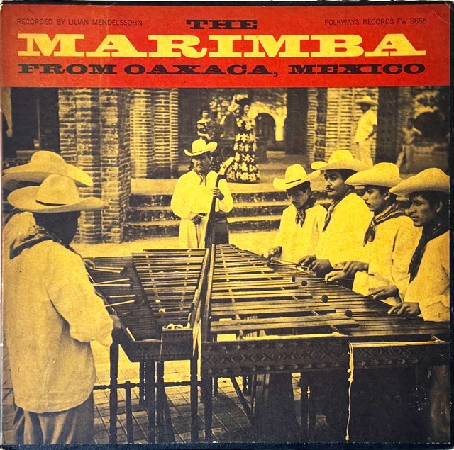 アメリカン・フォーク・ミュージックの録音物から原住民の音、フィールド・レコーディングまでと歴史的音源を多く残す、フォークウェイズからの1枚。こちらは現地録音盤で、メキシコの観光都市オアハカのマリンババンドが演奏する様を収録。地元の演奏家らによる9人編成と3人編成バンドの音が録音としてはざらっとしていていながら、街の空気に響き溶けるような様が素晴らしい。打鍵の熱量、生み出されるポコポコとした音がとても心地良いです。 World, Field Recording USA 12inchレコード 33rpm Mono Folkways Records FW 8865 1965 ジャケ 3点/盤 4点 ジャケ開口部より上部10cm程度下部2cm程度裂け 盤良好 ♫ )))) 試聴音源 ♫ )))) https://velvet-turnon.ssl-lolipop.jp/turnonsample/themarimbafromoaxacamexico1.mp3 https://velvet-turnon.ssl-lolipop.jp/turnonsample/themarimbafromoaxacamexico2.mp3 https://velvet-turnon.ssl-lolipop.jp/turnonsample/themarimbafromoaxacamexico3.mp3