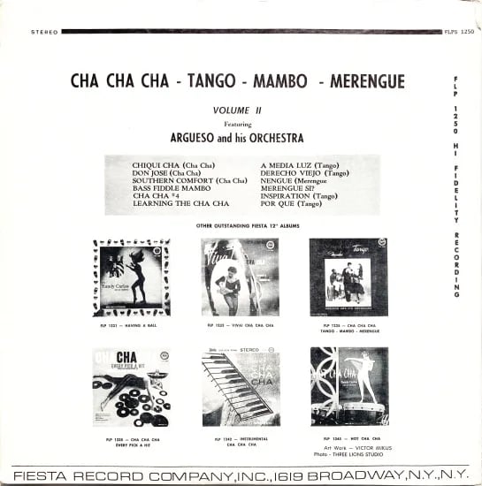 1950年代初頭より90年代まで米ニューヨークを拠点に活動したラモン・アルグエソ率いるラテン・ダンス・オーケストラ、Argueso And His Orchestraの1枚。活動期間に作品数はさほど多くない彼らですが、プエルトリカンの間で人気を博し毎夜ライブにな現場主義だったのかなと。本盤から聴こえる音もそのままダンスフロア化必至の本流なチャチャ、マンボ、タンゴ、メレンゲな数々。熱さもあり、涼やかさもあり、流暢でキレのある演奏はバンドの充実度が高く魅力いっぱいです。