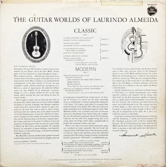 ブラジル出身で、クラシカルな素養とジャズとボサノヴァを第一線で体現し続けた、ギタリストのロウリンド・アルメイダ。本盤は、多種多様なスタイルに常に取り組んだ彼ならではな、クラシカルな部分に踏み込むもの。自作自演的要素とその質の高さには恐れ入る彼が、自身の周辺とルーツ、ギターのルーツ、それまでに書かれた音楽はどうだったかを自分也のアプローチで響かせます。片面ずつに「クラシック」「モダン」と銘打って、ギターとヴィオラとフルートという編成で。ギター以前の音楽はこうだったけど、ギタリストとしてこう奏でるということ、17から19世紀までの音楽もしっかりと踏まえようとする温故知新に溢れた精神性の豊かさを感じる1枚。