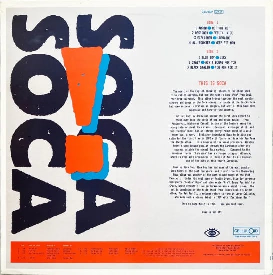 カリプソの発展形と言われ、ソウルのソ(So)とカルプソのカ(Ca)から名称としてソカ(Soca)が誕生。性急さが魅力で、トリニダード・トバゴ〜イギリスでもダンスミュージックとして人気を獲得。本盤は、特にイギリスではヒットチャートでもランクインした1984年当時フロアユースでも人気のあった楽曲を収録した編集盤。2カ国に加えフランスでリリースされました。84年Arrowの"Hot Hot Hot"から始まり、ポップスとディスコとソカという関係性が見事に昇華された曲からスタートするのも象徴的です。ひたすらに楽しさ溢れてます。