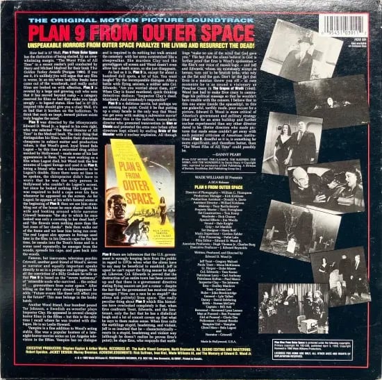 「史上最低の映画」とも言われる、1959年に製作されたアメリカ映画のサウンドトラックアルバム。ティム・バートンが映画化したことでも知られる、エド・ウッド。彼が監督・脚本・製作を担当。その映画から音声を持ってきたかと思える内容で、聴いてるとこのレコードから浮かびあがるこの作品、もしくは、架空の映画やテレビの世界へ没入します。