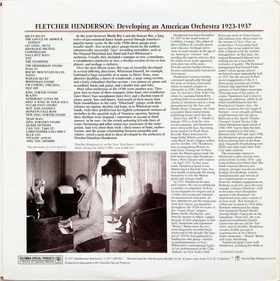 ジャズ楽団のひとつのスタイルを提示し、20年代後半から30年代初頭のジャズ楽団は全て彼の影響下にあったと言える存在のバンドリーダー兼ピアニスト、フレッチャー・ヘンダーソン。彼の楽団が1923年~1937年に録音した音源から選曲された大充実な2枚組。コールマン・ホーキンスを筆頭に、強烈な個性と才能あるプレイヤー多数。エキサイティングな瞬間連発、個性が凌ぎを削り音を発したと心底思える音が鳴ります。スミソニアン博物館が運営したスミソニアン・コレクションからリリース。