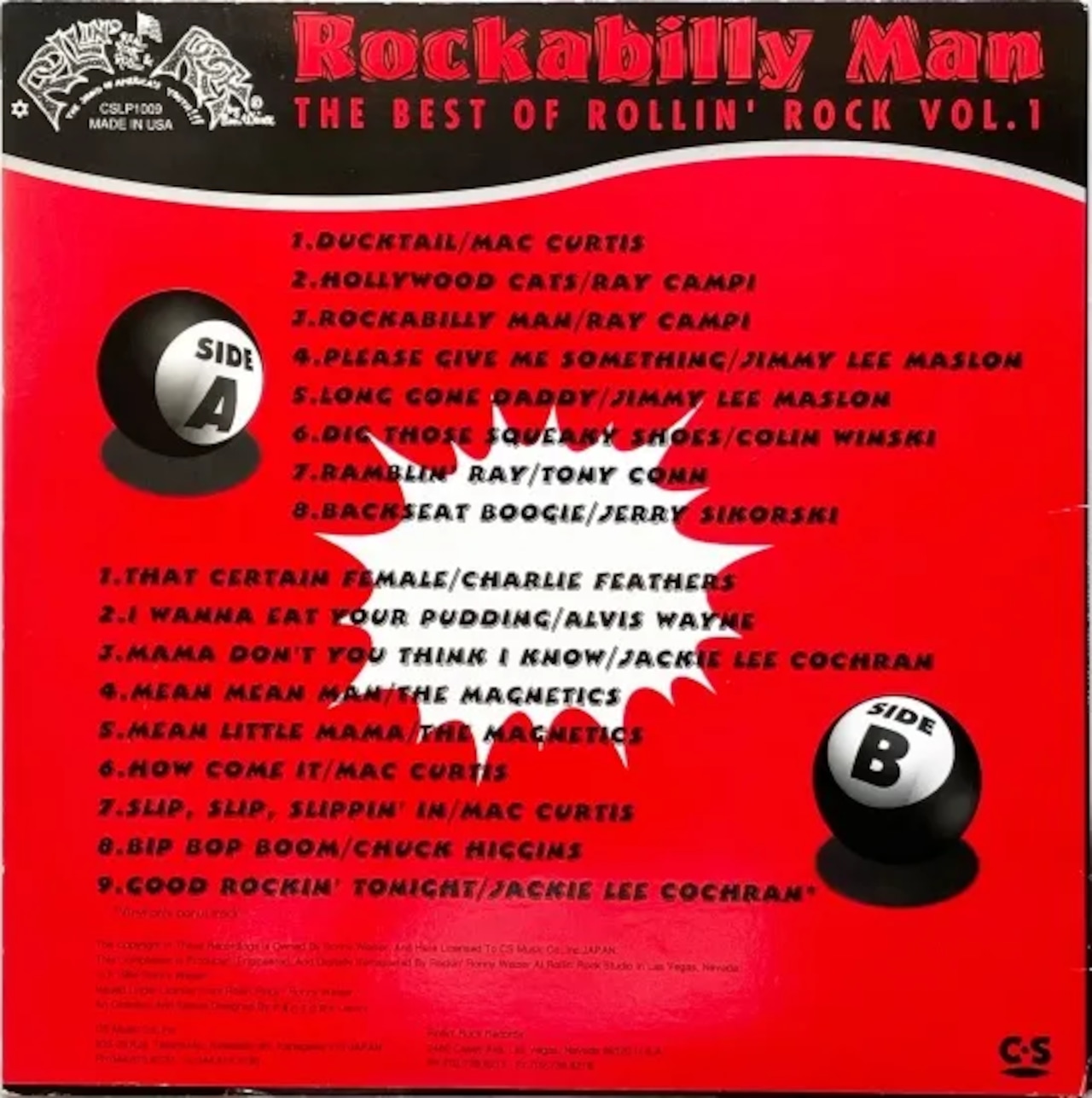 伊ミラノ出身のロニー・ワイザーがロックンロールに熱狂し渡米、移住後にファンジン「ローリン・ロック」を発行〜DIY精神溢れるインディペンデント・レーベルへ発展〜熱量の高いロッカーの発掘にも成功。彼が探し当てた綺羅星のごときロックンローラーをコンパイルするレーベルコンピの第1集。レーベルを代表するメンツの個性炸裂、ロウでゴリゴリの演奏録音が最高。経緯はわかりませんが、日本のCS MusicとRollin' Rockによる企画盤。日本ではCD流通もありますが、こちらはCDより収録曲多いレコード盤です。