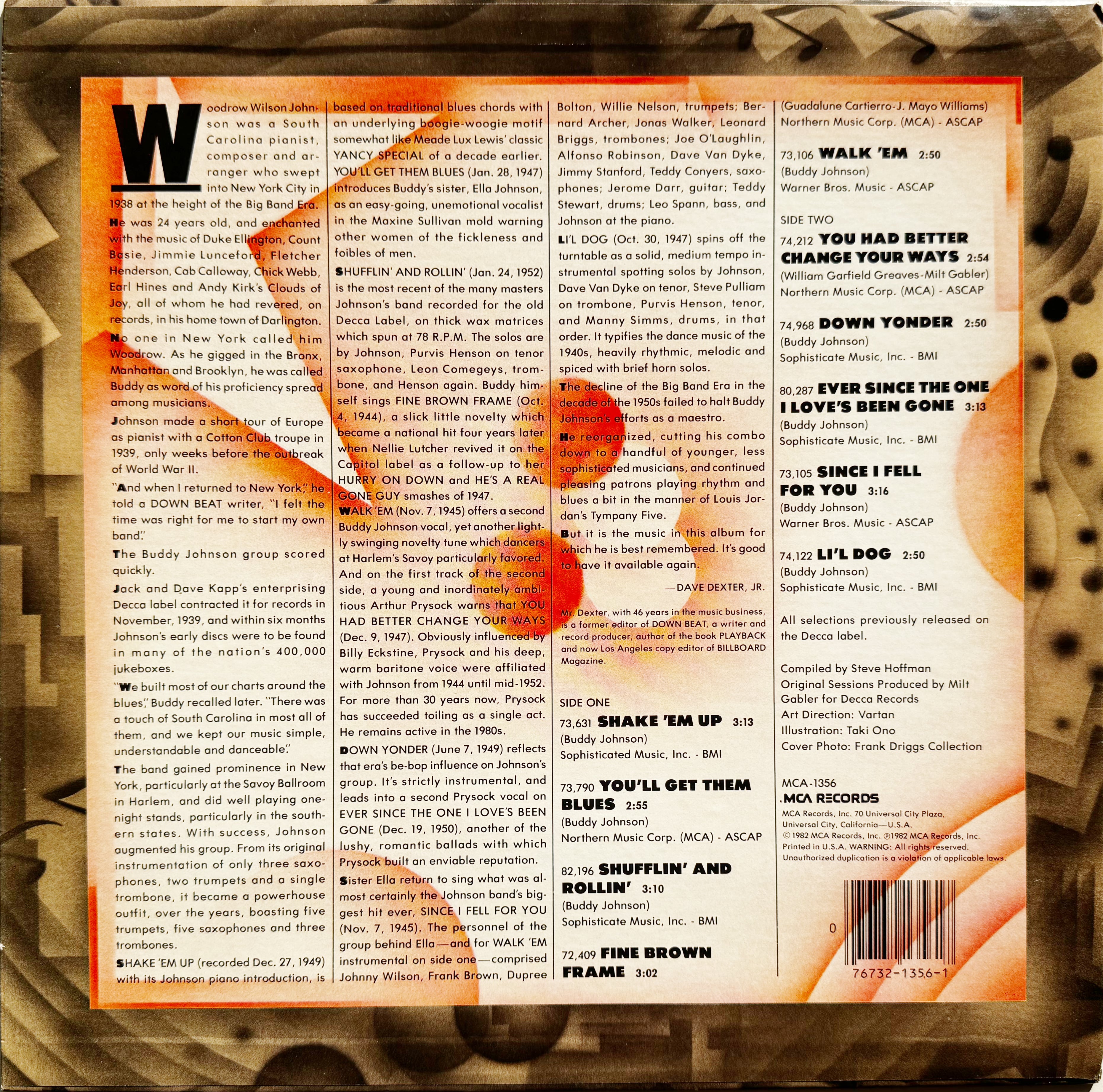 米・MCAレコード、デッカが、残されていたアメリカとフランスのジャズシーンの音源を年代やスタイル、もしくはバンドに特化して編集を行い1980年から1983年までに、合計80枚リリースを行ったシリーズ"Jazz Heritage Series"の1枚。戦中戦後より活動アーリー・リズム&ブルースの時代より活躍したバディ・ジョンソン。妹のエラ・ジョンソンとの活動が知られます。彼女と録音しヒットした"Since I Fall You"はジャズ・スタンダードで本盤にも収録。どれもギラギラとした豪快かつダンサブルなナンバーがたっぷりの構成が嬉しい1枚です。