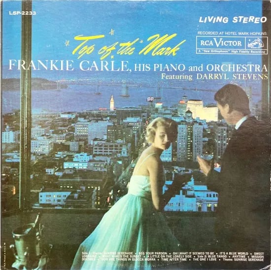 ダンスバンド全盛期に登場し1940年代以降活躍の場を広げ多くの作品を残すピアノ奏者兼バンドリーダー、フランキー・カール。ソロ作では、その時々の時代を意識しつつ、カクテルピアノな演奏で人気を獲得した彼。本盤は1960年5月7日にサンフランシスコのホテル、マーク・ホプキンスの最上階でビッグバンドとゲストボーカルにダリル・スティーヴンスなどを迎えたライブ録音。彼らのテーマ曲1944年ヒットの"Sunrise Serenade"から1960年当時にヒットした"Beg Your Pardon"とい流れでスタート。彼らのヒット曲が目白押し、ピアノとスウィートなアンサンブルも聴きどころ多い充実盤。