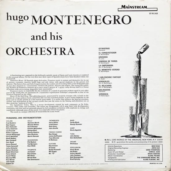 米ニューヨーク出身で、"Original Music From The Man From U.N.C.L.E."をはじめ映画やTVのサウンドトラックやモーグシンセサイザーを使用した作品などで知られる、ウーゴ・モンテネグロ。本盤では、ラテン・アメリカやスペインの音楽スタイルを魅力溢れるアレンジに。フラメンコ、闘牛場で奏でられる音、レクオナやヴィラ・ロボスといった先人らの生んだシンフォニーという3つのスタイルを1つに集約。ほぼ全曲本人作です。これまた見事な手腕で魅力溢れる仕上がりで、楽しいレコード。 ※Capitolレコードのメールオーダー購入で流通した盤です。