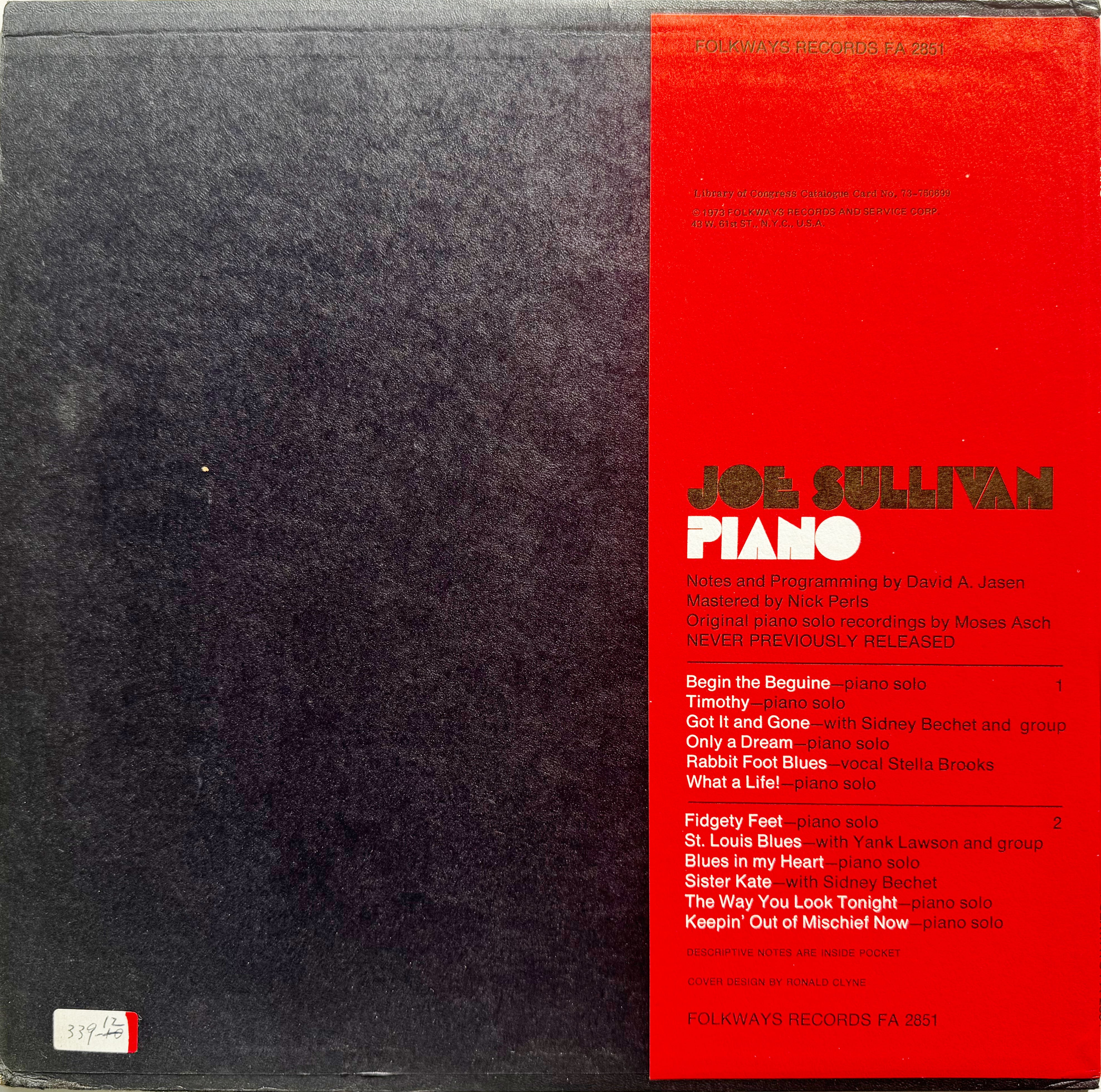 アメリカン・フォーク・ミュージックの録音物から原住民の音、フィールド・レコーディングまでと歴史的音源を多く残す、フォークウェイズからの1枚。本盤はアイルランド移民2世でシカゴ生まれのジャズ・ピアニスト、ジョー・サリヴァン。こちらリリース時には、世にまだ出ていなかった音源ばかり。ソロにバンド、シドニー・ベシェとの演奏を収録。細やかかつ丁寧、アレンジ力の高さも感じる演奏が素晴らしい。モーゼス・アッシュ録音、リリース頃こういった音源のアーカイブに尽力していたニック・パールス、ライナーにピアニストのデイヴィッド・ハセン。
