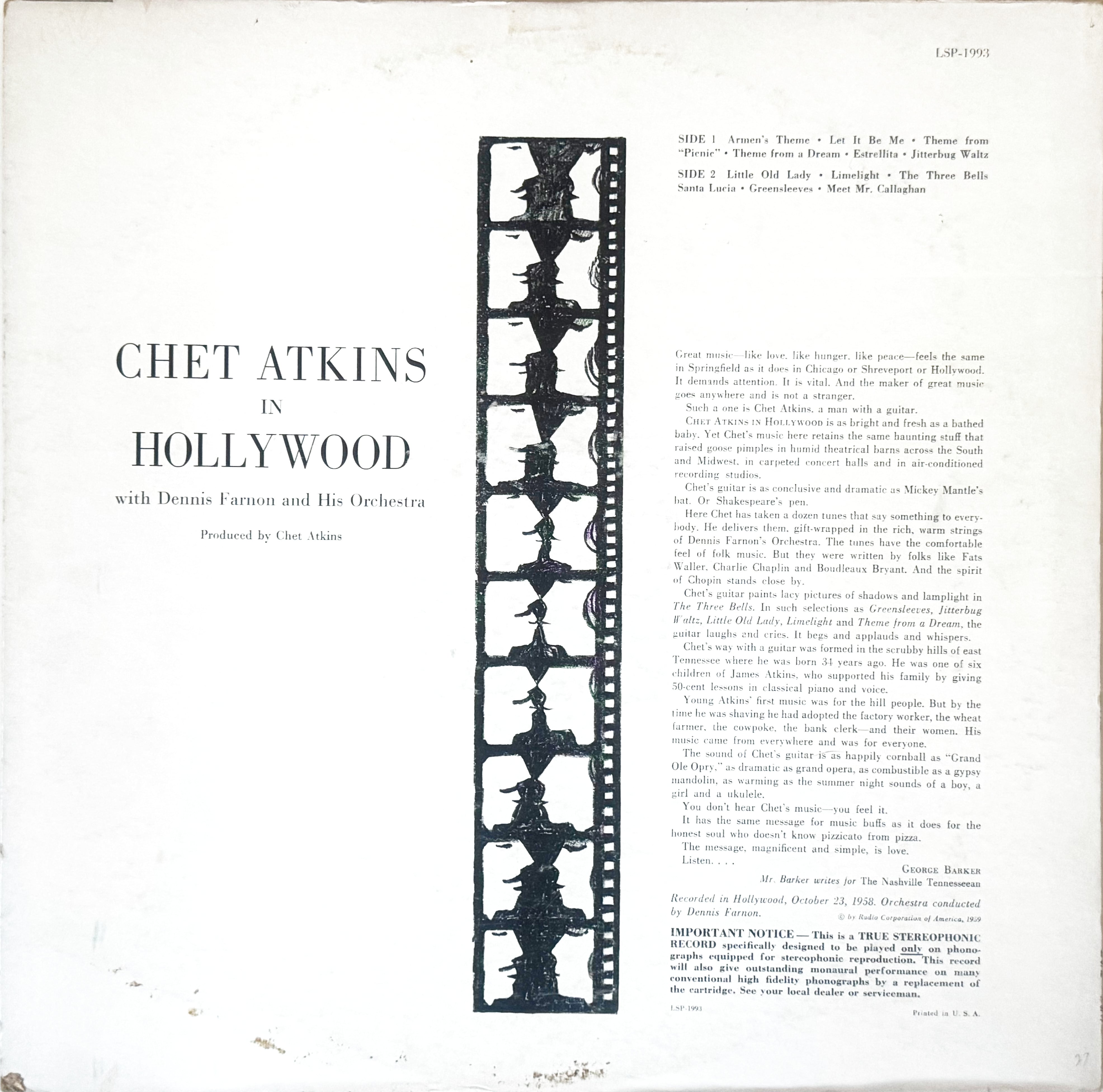 マール・トラヴィスやレス・ポールの演奏をラジオで聴いた衝撃から我流でギターを弾き始め、カントリー、ロックンロール、ジャズ、映画音楽もと弾き渡った「ミスター・ギター」ことチェット・アトキンス。カントリー音楽総本山RCAで、ミュージシャン兼プロデューサーとして活躍した彼。タイトル通りのハリウッド録音。「近眼のマグー」で知られる作編曲家のデニス・ファーノンのオーケストラと共に。きめ細かく行き届いたギタープレイと、素晴らしいストリングスアレンジで非日常の夢見を与えてくれます。