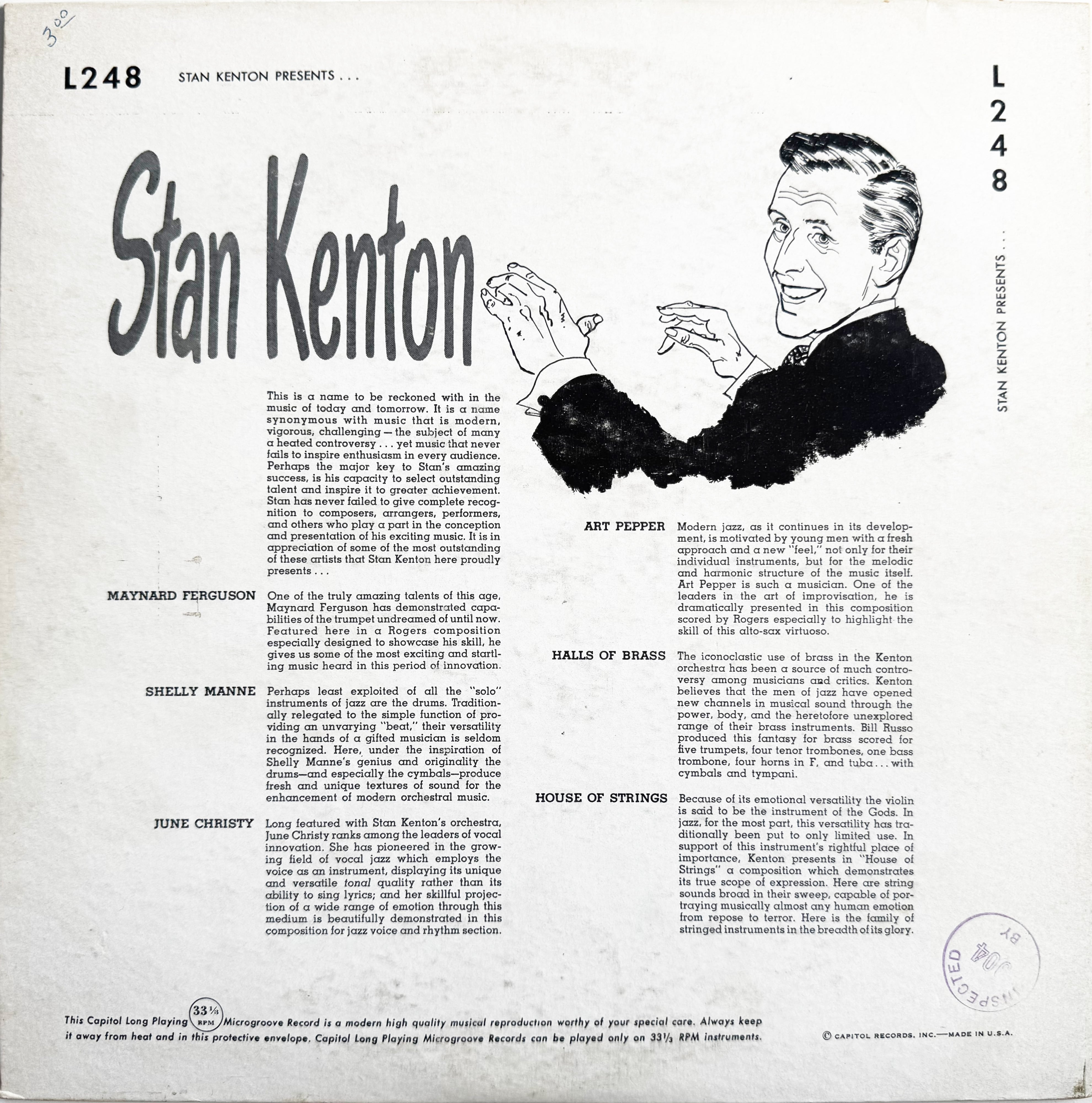 ジャズ・ピアニストとして活動し、ウディ・ハーマンと共にウェストコースト・ジャズの潮流を育んだスタン・ケントン。プログレッシブ・ジャズ時代が幕明けし、数々の楽団が最先端のサウンド表現を目指した中での代表格。楽曲とオーケストラサウンドで描く強烈なパフォーマンスから驚きで突かれる圧倒感とドラマチックが同居、凄まじいです。フィーチャーする面々を「アート・ペッパー」「メイナード・ファーガソン」「ジューン・クリスティ」「シェリー・マン」を曲タイトルとし、アイデアと鬼気迫るとも思える演奏が目白押しな嵐のような1枚です。
