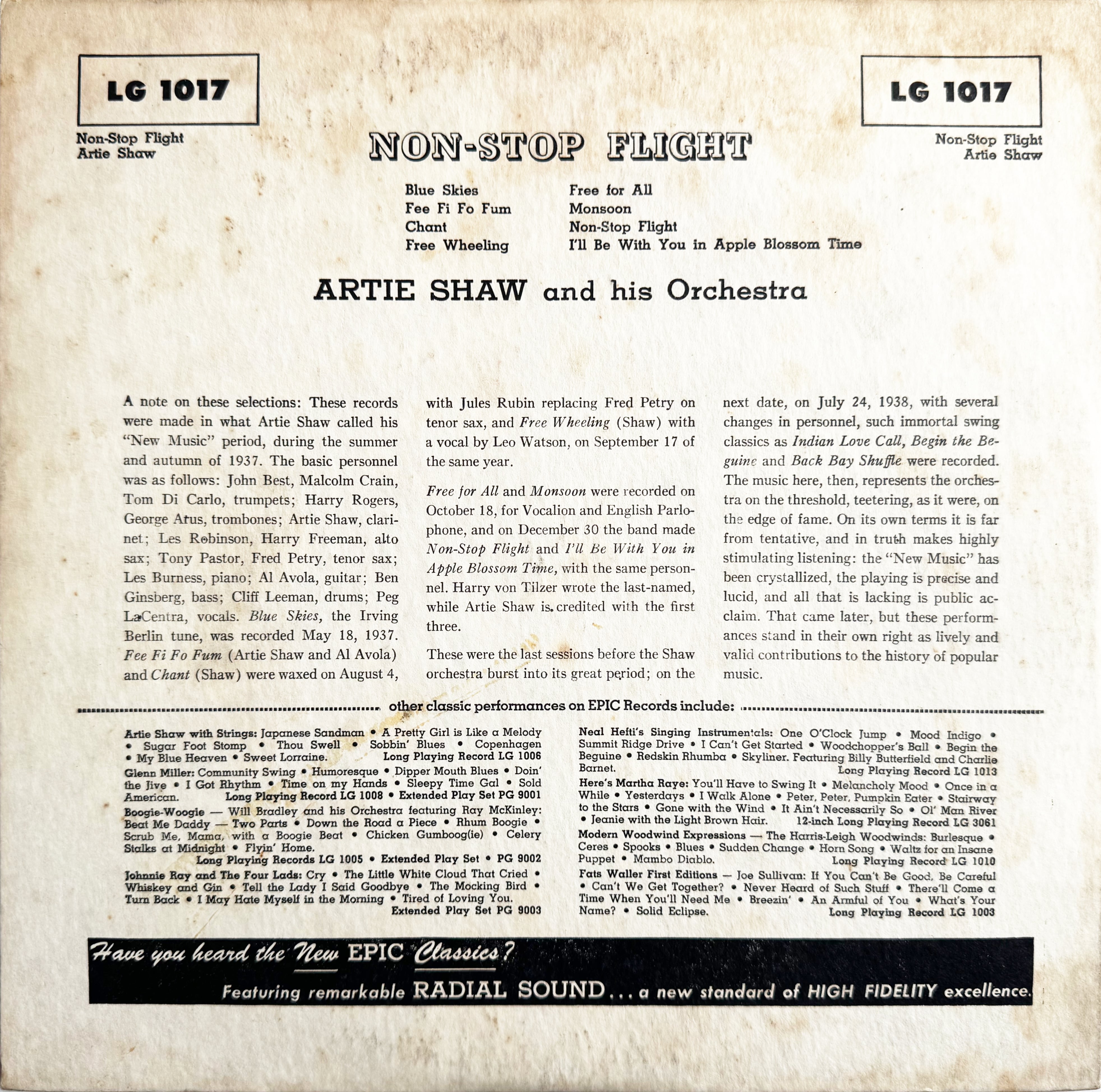 Epic Records LG1017 1954 ジャケ 2点/盤 2点