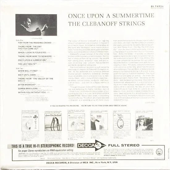 5歳でバイオリンを始め7歳で初リサイタル、以降活躍の場を広げたバイオリニスト兼コンダクター、ハーマン・クレバノフ。ミュージカルや映画作品に多くの録音で参加。ソロ作を50年代〜67年までマーキュリーからリリースし、恐らく録音物のラスト作として68年にイギリス録音で本盤をデッカに残しました。クラシックとポップスを行き来した彼が取り上げたのは同時代の映画曲などポピュラー楽曲。趣向の凝ったアレンジと様々な音で彩られ、次から次への魅了される最高のポピュラー音楽集です。ジャケット含め最高。